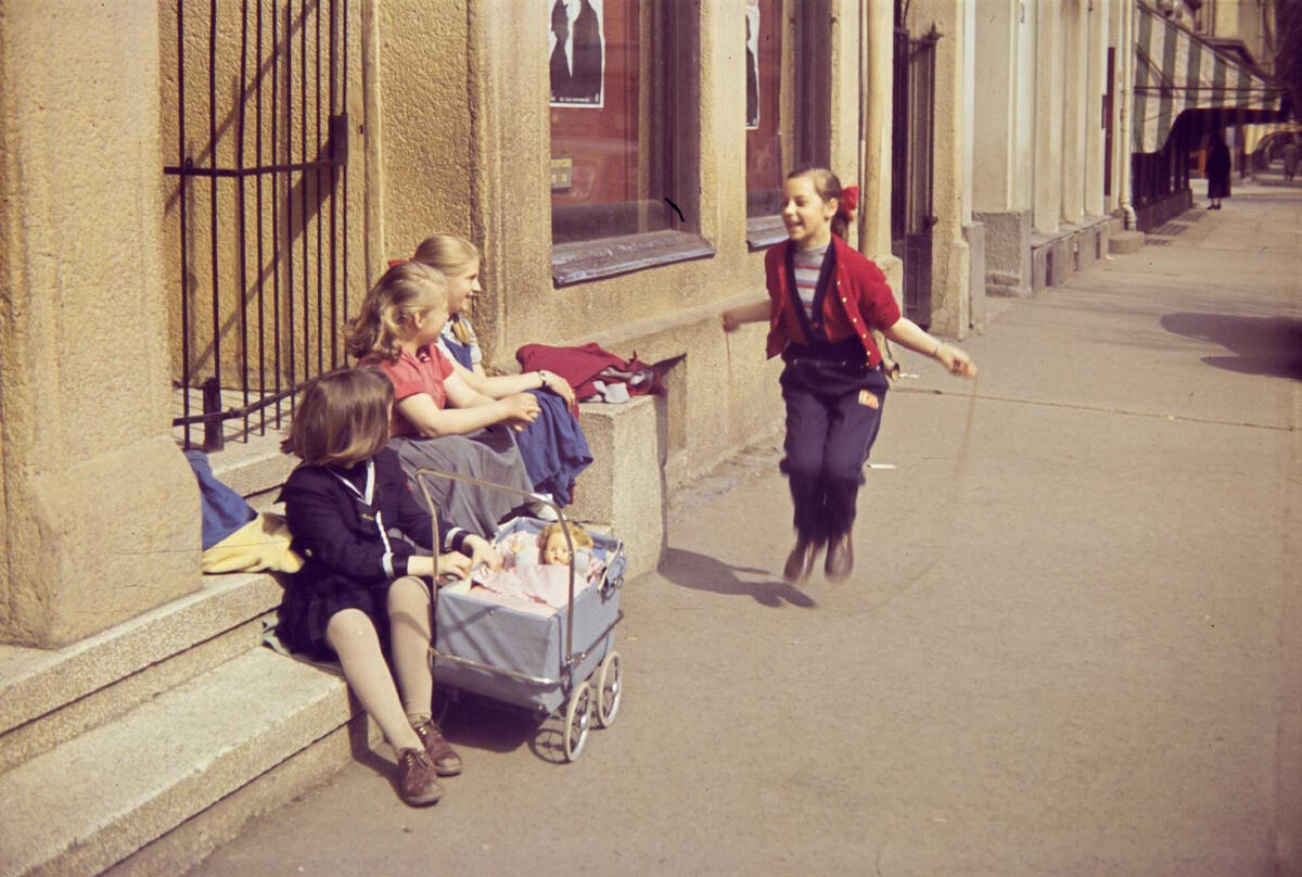 Sparsommelighet, optimisme og klokkertro på fremtiden. Økonomien vokser - både for landet og folk flest. Men mange bor fortsatt under enkle forhold, og innlagt vann er ingen selvfølge. Mor jobber hjemme og far jobber ute. Barna sitter klare med ettøringen og sparegrisen sin til lørdagsbarnetimen på radio med Alf Prøysen. Alt godt kommer fra Amerika. Ungdom blir ungdom slik vi kjenner de. Filmstjerner og skøyteløpere er idoler. Sparebankuka gjennomføres for første gang i Norge.